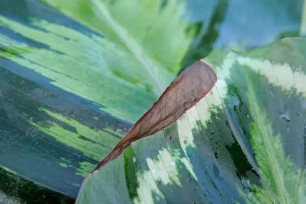 Los bordes marrones en las hojas o puntas marrones pueden ser causadas por el aire seco, por lo que aumenta la humedad alrededor de la planta, ya sea por nebulización o parada en una bandeja de guijarros húmedos. También puede haber sobrealimentado su planta o haberla regado con agua dura.
