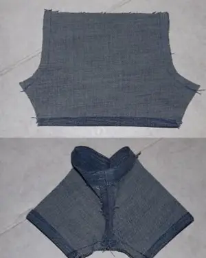 Las instrucciones de costura para los pantalones cortos de jean se hacen de la misma manera que las instrucciones de legging anteriores, incluido el uso de un elástico de 10 'de largo y 1/4' de ancho.